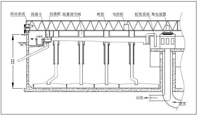 吸泥裝置分為兩種:水位差式和虹吸式,可按用戶要求定制。